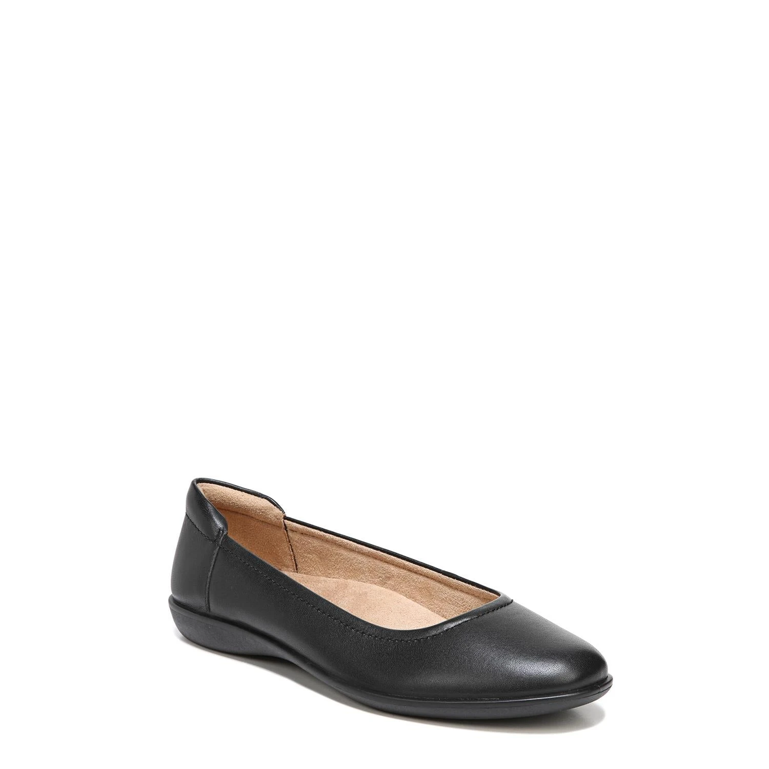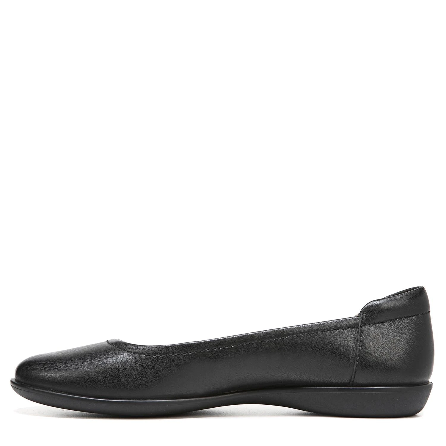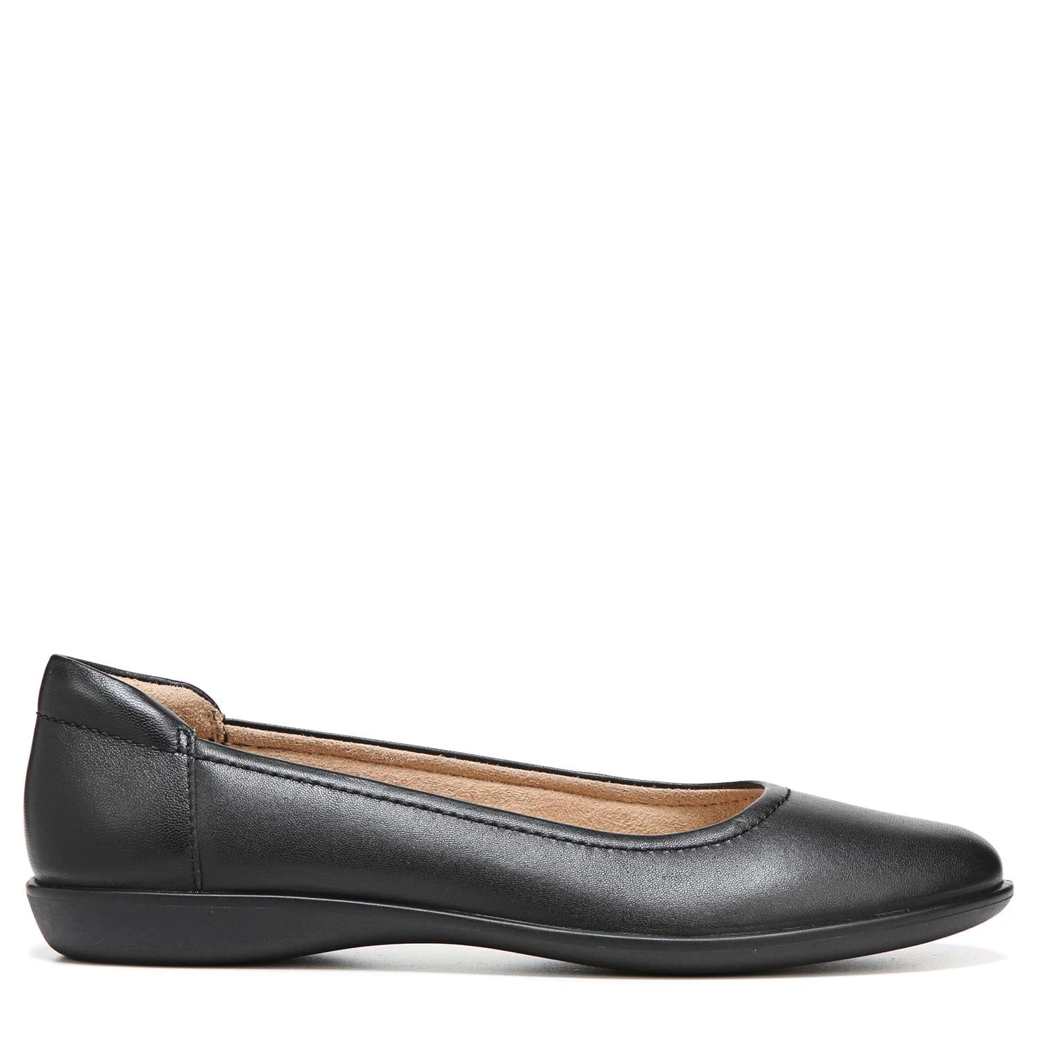 The Flexy Flat from Naturalizer gives you the versatility of being able to wear it with all of your favorite looks. Leather or microsuede upper in a flat style with a round toe. Easy slip on entry. Padded collar for added comfort. Lightweight construction for a natural feel. Soft, breathable lining. N5 Comfort technology provides extra cushioning from midfoot to arch. Receive heel-to-toe balance through a flexible, non-slip outsole. 3/4 inch heel.