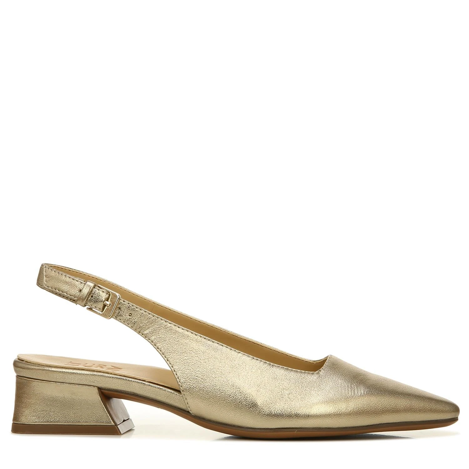 From our True Colors collection // True Colors are We. Me. Us. A celebration of who we are when we are honestly ourselves. Available in inclusive colors, this low block heel with a snip toe and slingback strap brings elegance to your go-to staples. Get there beautifully. Comfortable + classic low block heel with square topline. Patent leather, metallic leather, suede or leather upper with a snip toe. Adjustable slingback buckle strap. Contour+ technology for a premium fit and all-day comfort experience. Non-slip outsole. 1 1/4″ sculpted heel. Consciously packaged: 100% of our shoe boxes are made of 80% recycled paper + soy-based ink. Designed using sustainable materials. WHY YOU’LL LOVE IT: Ingenious elegant utility. From our True Colors collection. An inclusive spectrum of neutral tones that celebrates all women and the unique skin we’re in. Available in an inclusive size range of tough-to-find sizes and widths for a custom-designed fit and feel for all-day wear. The Shoe With the Beautiful Fit. Since 1927.