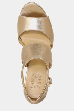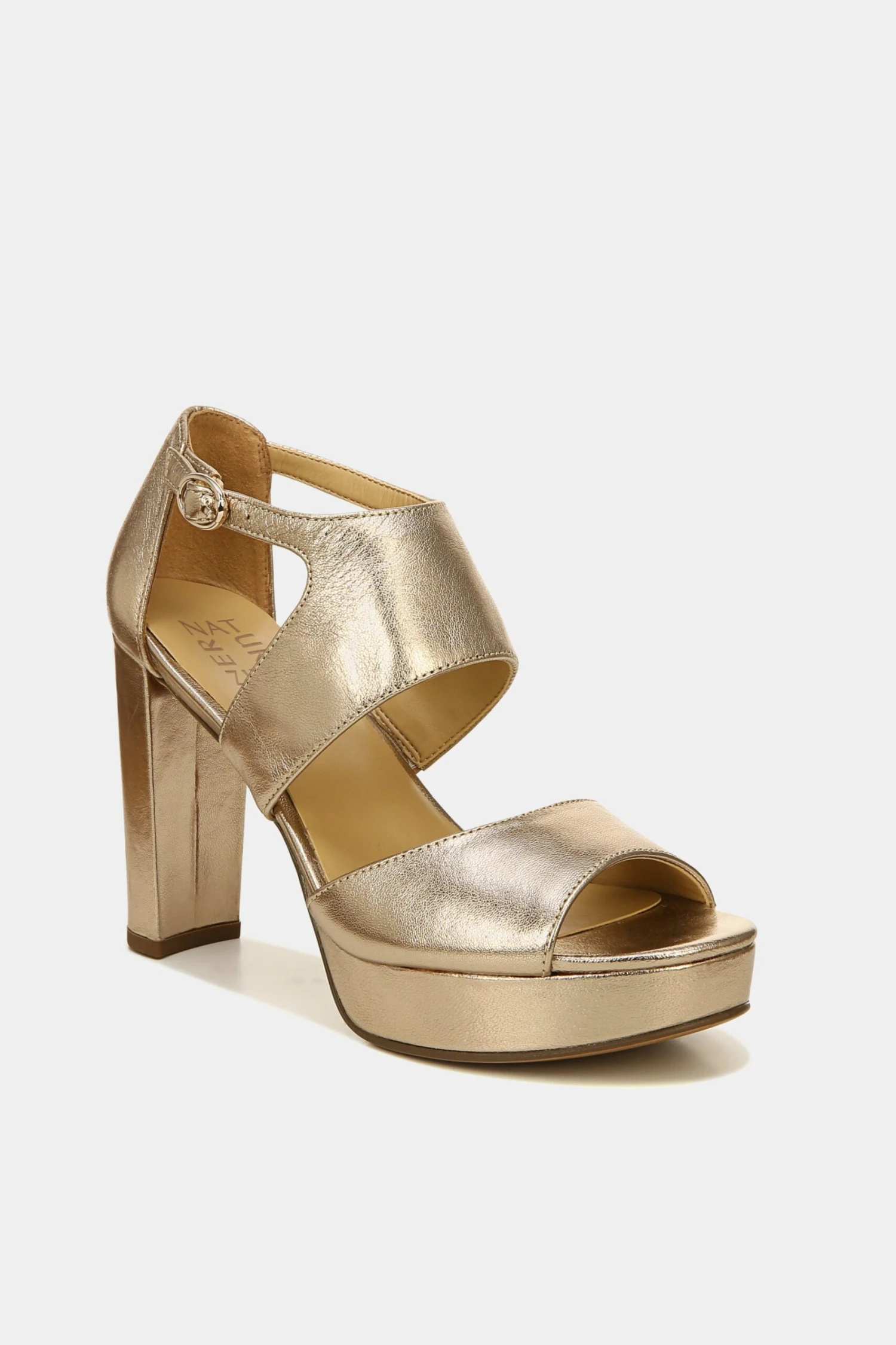 Going up: statement-making platform sandals with a peep toe elevate every occasion. Get there beautifully. Platform dress sandal with cool cutouts. Leather, suede or metallic leather upper with a peep toe.