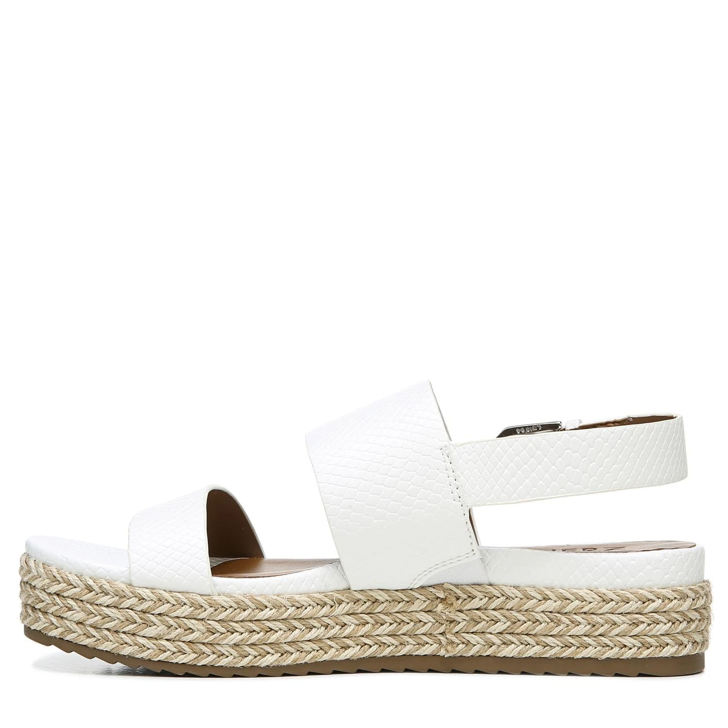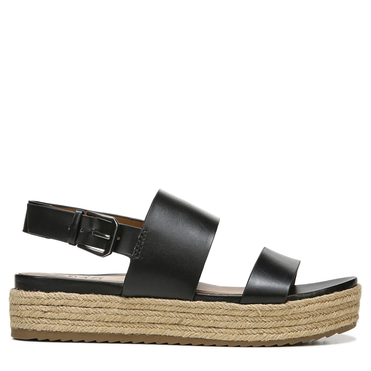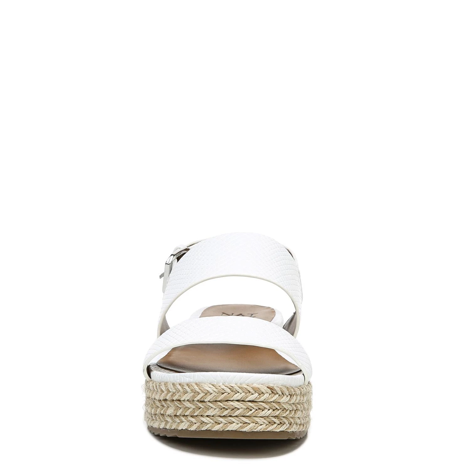 Women’s Naturalizer Patience Medium/Wide Platform Sandal Faux-leather upper in a flatform sandal style. Slip-on entry with adjustable buckle strap at heel. N5 Contour includes a cushioned insole, lightweight components and breathable linings. Synthetic outsole. 1.75″ platform height.